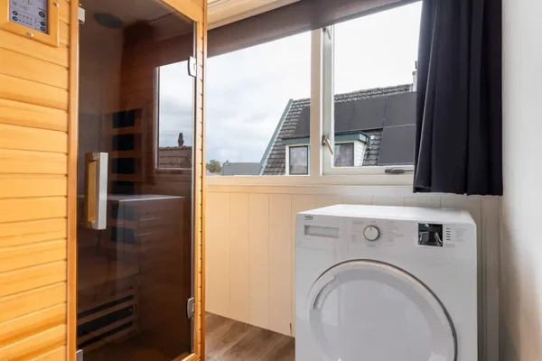 De indeling omvat een entreehal, een sfeervolle woonkamer met ruimte voor zithoek en eettafel, en een moderne woonkeuken met openslaande deuren naar de veranda en achtertuin. Op de eerste verdieping zijn er drie lichte slaapkamers en een moderne badkamer met inloopdouche en sauna. De garage heeft een zolder en is voorzien van elektra, verwarming en water. Gelegen in Apeldoorn-Zuid, dicht bij voorzieningen.