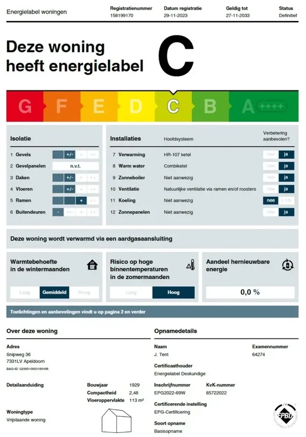 • De woning is gebouwd In 1927 en ligt in de buurt Vogelkwartier in Apeldoorn.