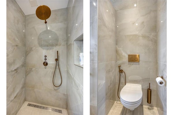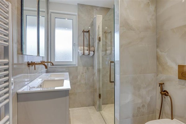- Moderne badkamer: Voorzien van dubbele wastafel, ruime douche en een tweede toilet.