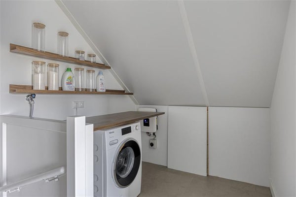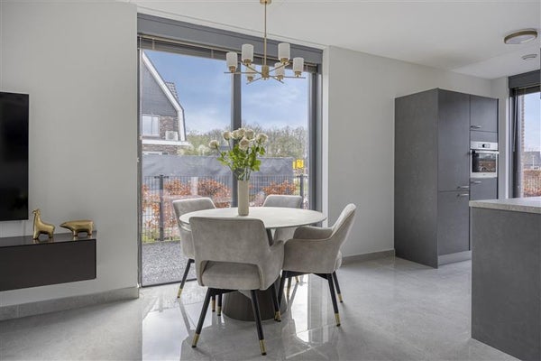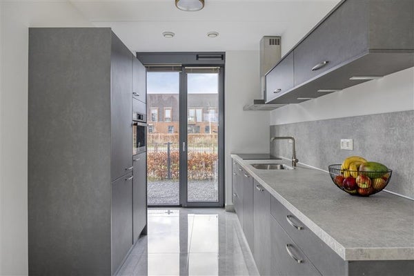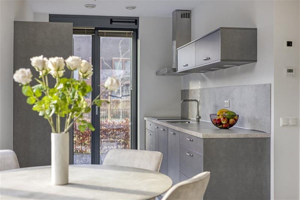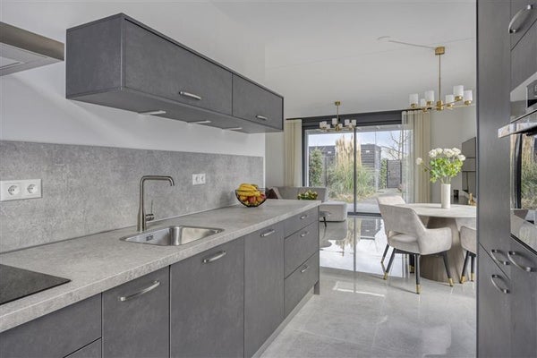 Aan de voorzijde van de woning bevindt zich de nette, moderne keuken. Met zijn strakke design en inbouwapparatuur is dit de ideale plek voor dagelijks gemak en gezellig samen koken. De open opzet zorgt ervoor dat je altijd in contact blijft met de rest van het gezin of je gasten.