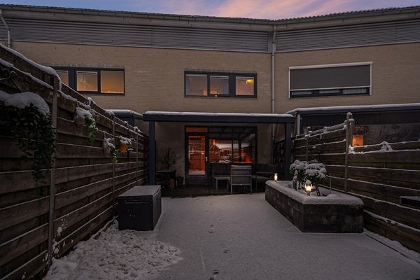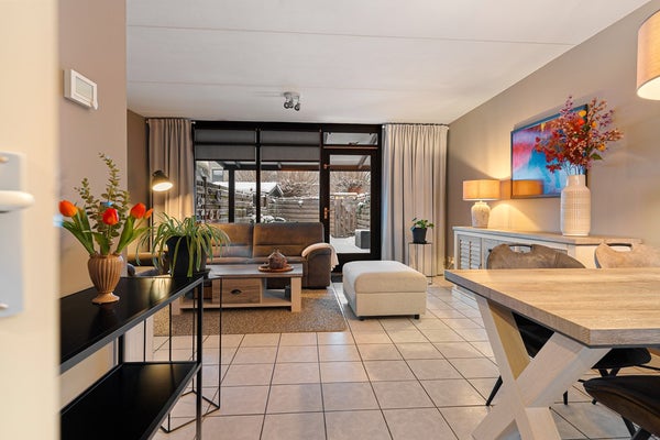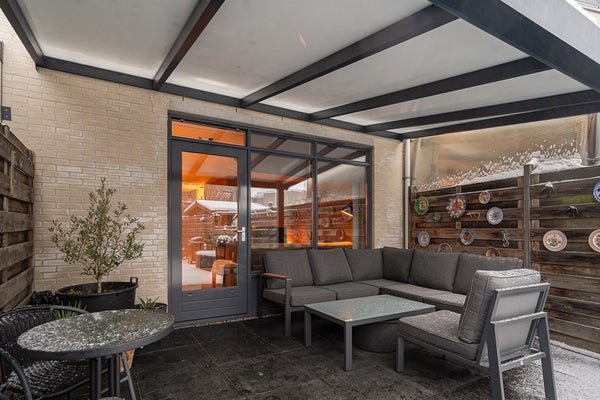 De achtertuin is een absoluut pluspunt. Met een diepe tuin en een veranda die fungeert als verlengstuk van de woning, is dit een plek waar je tot in de late uurtjes geniet. Barbecue aan, vrienden over de vloer, lang natafelen in de avondzon – het kan hier allemaal.