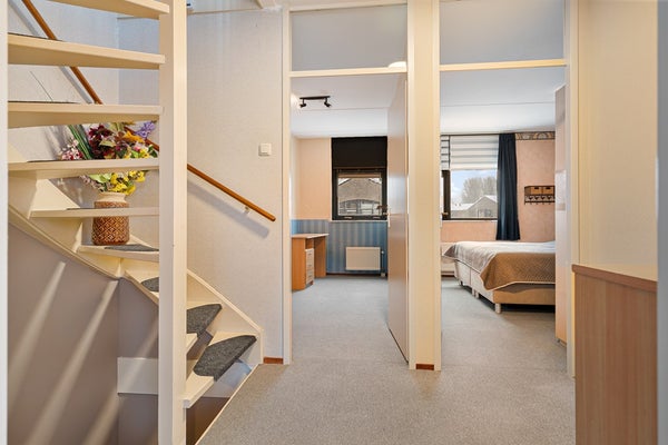 Op de zolderverdieping wacht een mooie verrassing: een multifunctionele zolderkamer met eigen dakterras. Ideaal als thuiswerkplek, extra slaapkamer, hobbyruimte of relaxplek. Even naar buiten voor frisse lucht? Dat doe je hier gewoon boven.