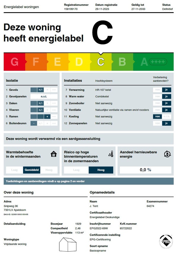 - De woning is gebouwd In 1927 en ligt in de buurt Vogelkwartier in Apeldoorn;