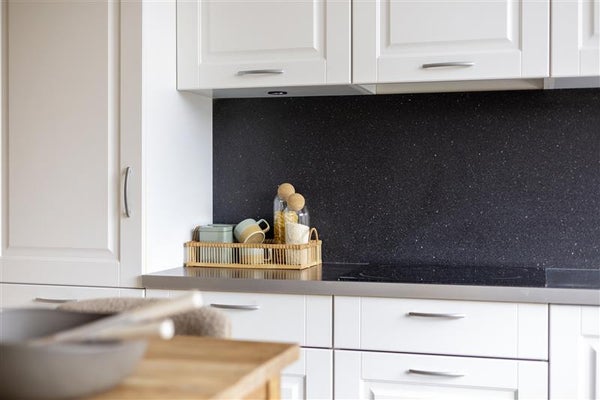 De keuken grenst aan de woonkamer en is gesloten, zodat je tijdens het koken even rustig kunt werken. Een prettige plek om de maaltijd van de dag te bereiden, terwijl de kinderen alvast de tafel dekken.