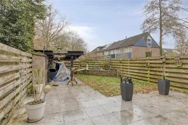Vanuit de woonkamer stap je zo de zonnige achtertuin in, perfect gelegen op het oosten. Hier geniet je in alle rust van de ochtendzon, een kop koffie en het gezelschap van vrienden of familie. De tuin biedt voldoende ruimte voor een fijne loungehoek, een speelplek voor de kinderen en is daarnaast onderhoudsvriendelijk ingericht. Aan de voorzijde van de woning bevindt zich nog een praktische berging.