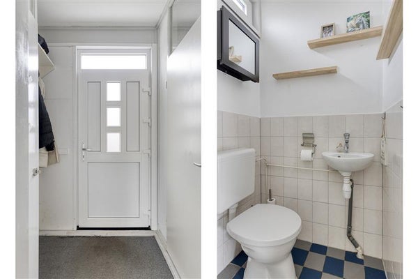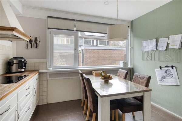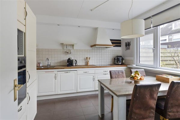 Wanneer je de woning binnenstapt, word je verwelkomd door de lichte hal met toegang tot het separate toilet, de meterkast en de trapopgang naar de bovenverdiepingen. De woonkamer voelt direct huiselijk door de grote ramen, die een zee van licht binnenlaten en een frisse uitstraling aan de ruimte geven. Hier is plek voor lange tafelgesprekken, knusse filmavonden of gezellige etentjes met vrienden. De nette keuken, geplaatst in een L-opstelling, is van alle gemakken voorzien. Denk aan alle benodigde ruimte en apparatuur om heerlijk te koken, bakken of simpelweg een kop koffie te maken. De keuken bevindt zich aan de voorzijde van de woning.