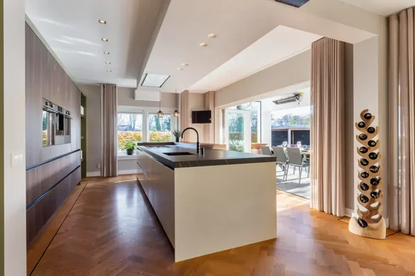Deze bijzondere, luxe villa is volledig gerenoveerd en biedt diverse gebruiksmogelijkheden. Met een oppervlakte van 425 m² en gelegen op een royaal perceel van 1.095 m², beschikt de woning over vijf slaapkamers en is er ruime parkeergelegenheid op eigen terrein, inclusief een dubbele garage. De villa heeft een lichte L-vormige living met erker, houthaard en een moderne open woonkeuken met een groot kookeiland. Het kantoor gedeelte kan ook dienstdoen als praktijkruimte, ideaal voor bijvoorbeeld een artsenpraktijk. Op de eerste verdieping bevinden zich drie ruime slaapkamers en twee moderne badkamers. De onderhoudsvriendelijke tuin is voorzien van een sauna, spa, en jeu-de-boulesbaan. Dankzij zijn centrale locatie in Apeldoorn zijn voorzieningen als scholen en het centrum op loopafstand.