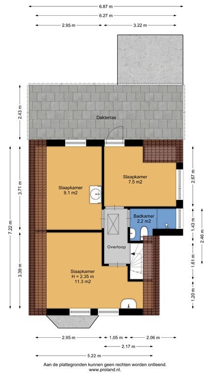 - Aanwezig (252 m², gelegen op het zuidwesten)