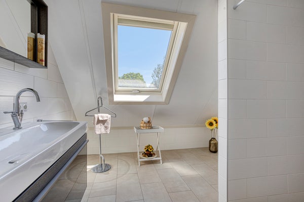 De eerste verdieping heeft vier slaapkamers en een tweede badkamer. De bergzolder biedt praktische opbergruimte. Dit landhuis combineert alle elementen voor comfortabel wonen.