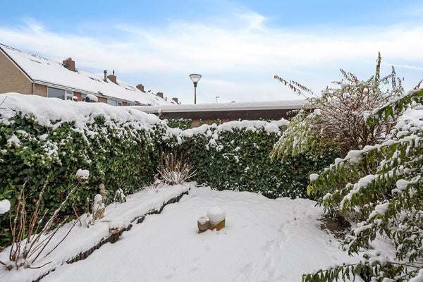 Aan de achterzijde van de woning ligt een knusse tuin, waar je naast BBQ’en of tuinieren ook prima een loungehoek kwijt kunt. Lekker privé en overzichtelijk. Ook is er een stenen schuur aanwezig.