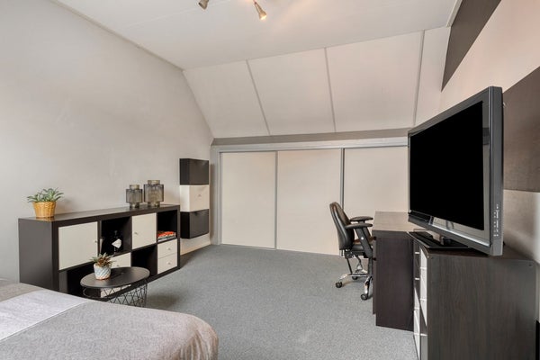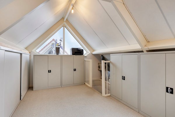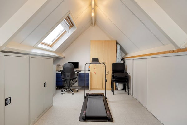 De tweede verdieping is bereikbaar via een vaste trap en bestaat uit een open ruimte van circa 23,8 m². Deze verdieping met vaste bergruimte is uitstekend geschikt als extra slaapkamer, werk- of hobbyruimte.