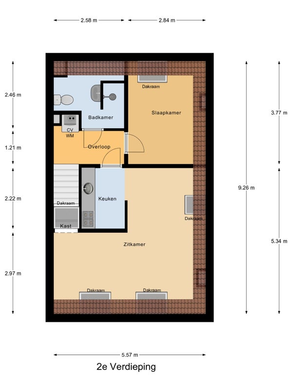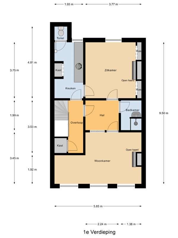 - De tussenwoning heeft een woonoppervlakte van 98 m² en beschikt over 5 kamers, waarvan 1 slaapkamer;