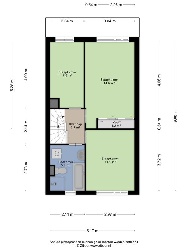 - De tussenwoning heeft een woonoppervlakte van 127 m² en beschikt over 6 kamers, waarvan 4 slaapkamers;