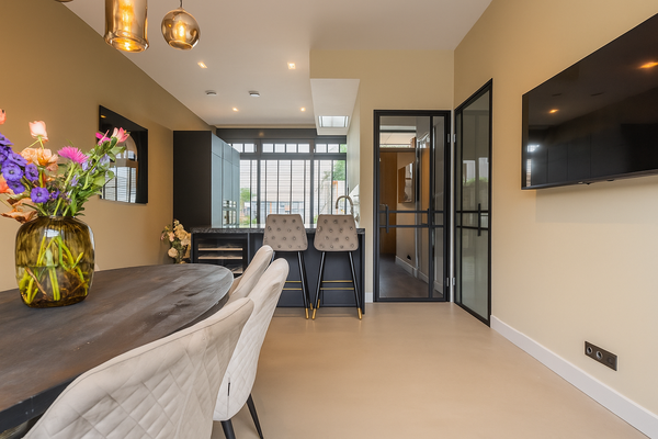 Deze "Hotel Chique" stadswoning, gelegen op loopafstand van Park Sonsbeek en tegenover Centraal Station Arnhem, biedt een woonoppervlakte van ongeveer 165 m2 verspreid over vier verdiepingen. De woning beschikt over een besloten stadstuin met jacuzzi en een berging. Vanuit de masterbedroom heeft u toegang tot een balkon met uitzicht op het park en de Witte Villa. Deze energiezuinige woning heeft energielabel A+++, een warmtepomp, vloerverwarming en een privéparkeerplaats. De indeling omvat een luxe keuken, een ruime woonkamer met balkon en drie slaapkamers. De moderne badkamer heeft inloopdouches en dubbele wastafels. De locatie biedt het beste van zowel stadsleven als natuur.