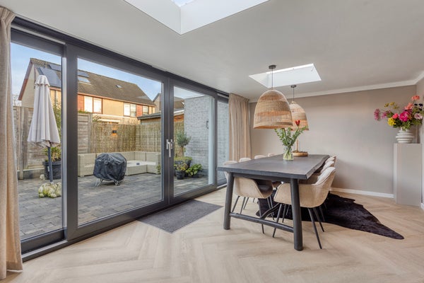 In De Laar Oost vindt u een ruime, vrijstaande woning, enkel geschakeld door de voormalige garage. Deze woning heeft een woonoppervlak van 144 m² op een perceel van 241 m² en beschikt over een lichte woonkamer en een gezellige woonkeuken, volledig vernieuwd in 2022, met ruimte voor een grote eettafel. Er zijn vier slaapkamers, ideaal voor gezinnen of als werkruimte. De tuin is zonnig en op het oosten gelegen, met een achterom.