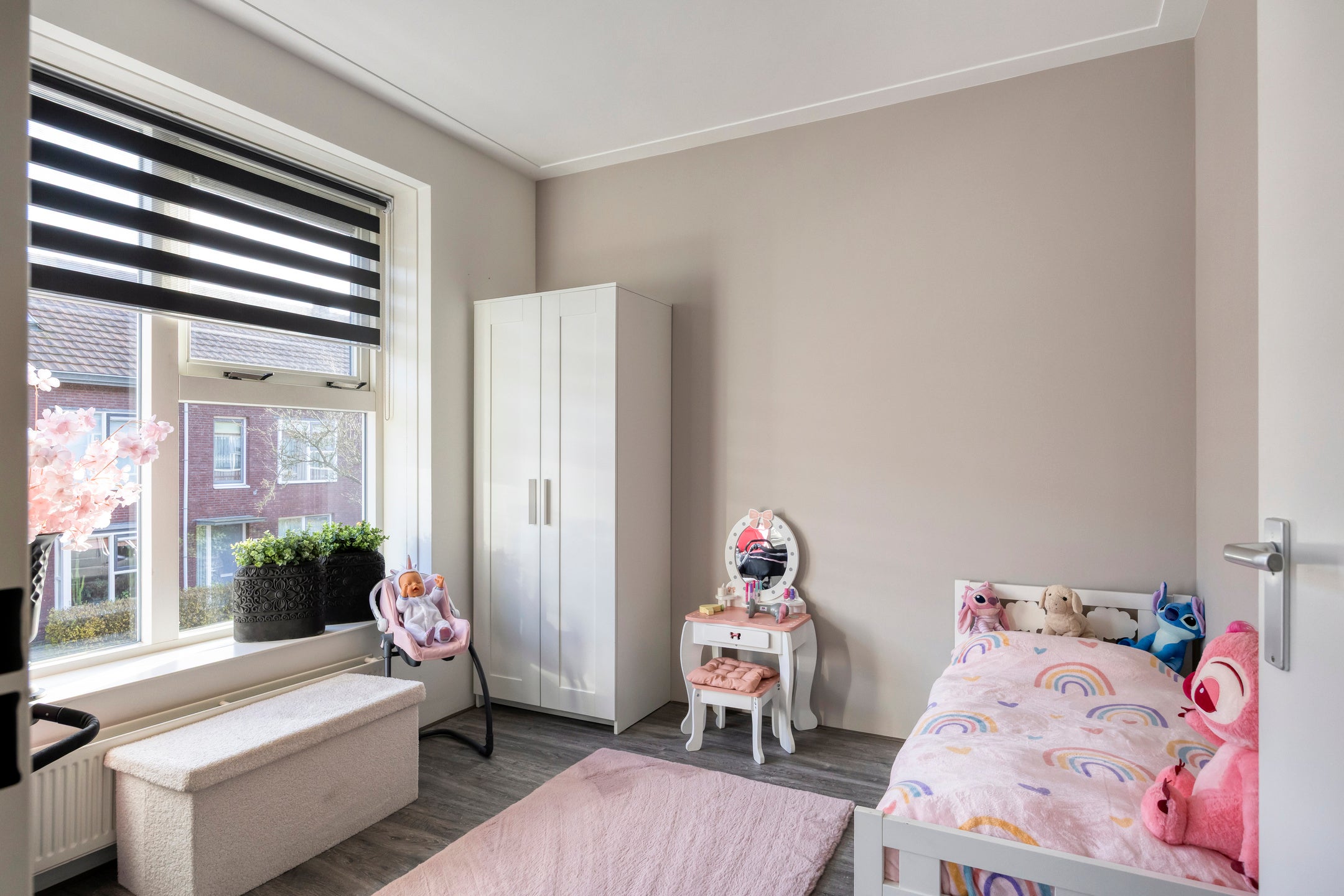 De indeling omvat een royale entree, een L-vormige woonkamer met openslaande deuren naar de tuin, en een moderne open keuken met inbouwapparatuur. Op de eerste verdieping zijn drie slaapkamers en een luxe badkamer. De tweede verdieping biedt een ruime vierde slaapkamer met dakkapel. De woning is gelegen in een kindvriendelijke buurt nabij voorzieningen en snelwegen, waardoor hier rust en bereikbaarheid samenkomen.