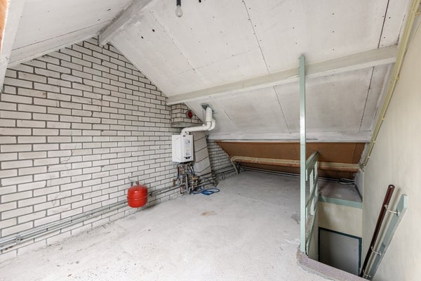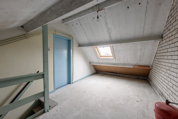 Via een vaste trap kom je op de zolderverdieping met heel veel bergruimte en nog een tweede slaapkamer. Je kunt hier met gemak nog een derde slaapkamer realiseren.