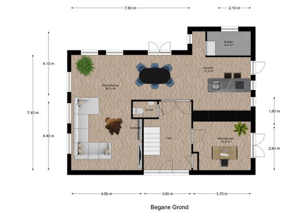 - Aanwezig (660 m², gelegen op het zuidwesten)