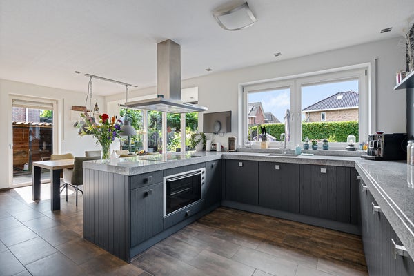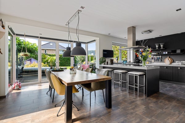 Deze vrijstaande villa in de nieuwbouwwijk Kloosterveen in Assen, met een woonoppervlakte van 256 m² en een perceel van 1.079 m², biedt een unieke mix van ruimte, luxe en duurzaamheid. Met een energiezuinige A++ label en vloerverwarming is het ingericht voor modern en comfortabel wonen. De begane grond bevat een ruime woonkamer van 43 m² met houthaard en en-suite deuren naar de leefkeuken van 38 m², daarnaast is er een kantoor of slaapkamer van 11 m² en een bijkeuken. Op de eerste verdieping zijn er vijf grote slaapkamers, een royale badkamer van 10 m² en een zolder voor extra opslag. De tuin rondom biedt veel privacy en mogelijkheden. Deze villa, gebouwd in 2007, is volledig geïsoleerd met HR++ glas en biedt een inpandige garage.