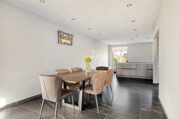 Deze 2-onder-1-kapwoning aan de Chopinlaan 42 biedt veel ruimte en comfort. Met een ruime oprit en grote garage is er plaats voor meerdere auto’s. Bij binnenkomst in de hal krijg je toegang tot de eetkamer en de lichte woonkamer. De woning is recent gemoderniseerd met een nieuwe luxe keuken, zonnepanelen en een warmtepomp voor energiezuinig wonen. De begane grond heeft een royale leefruimte, een luxe keuken met inbouwapparatuur en een schuifpui naar de tuin. De eerste verdieping beschikt over drie ruime slaapkamers en een badkamer. De tweede verdieping biedt een werkruimte en een vierde slaapkamer. De tuin is strak aangelegd en voorzien van een overkapping. Voorzieningen zoals winkels en scholen zijn op loopafstand, en het centrum van Assen is snel bereikbaar.