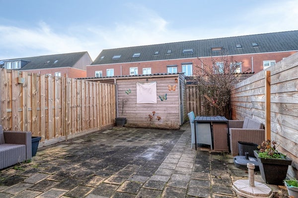 Achter in de tuin bevindt zich een vrijstaande berging (ca. 7 m²), geschikt voor fietsen, gereedschap en tuinmeubilair.