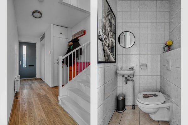 Via de entree betreedt u de hal met toilet, trapopgang en toegang tot de woonkamer.