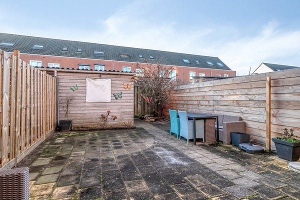 De diepe achtertuin biedt volop privacy en gebruiksmogelijkheden. Tijdens de bouw is reeds extra fundering aangebracht, bedoeld voor een aanbouw over de volledige breedte van de woning. Dit maakt een uitbreiding aan de achterzijde goedkoper en constructief eenvoudiger.