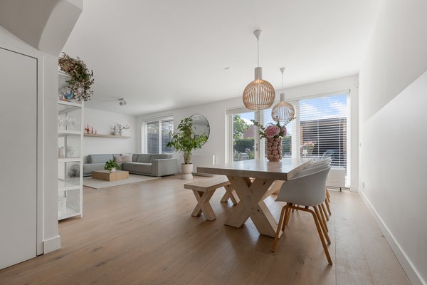 - De geschakelde 2-onder-1-kapwoning heeft een woonoppervlakte van 211 m² en beschikt over 6 kamers, waarvan 5 slaapkamers;