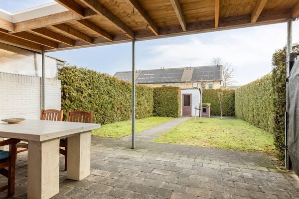 • De tuin is circa 18 meter diep. De tuin is onderhoudsvriendelijk aangelegd en er is een stenen tuinberging. Direct grenzend aan de woning bevindt zich een overdekt terras.