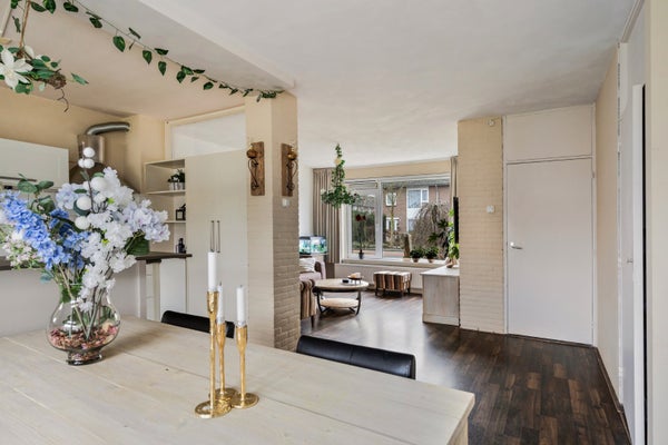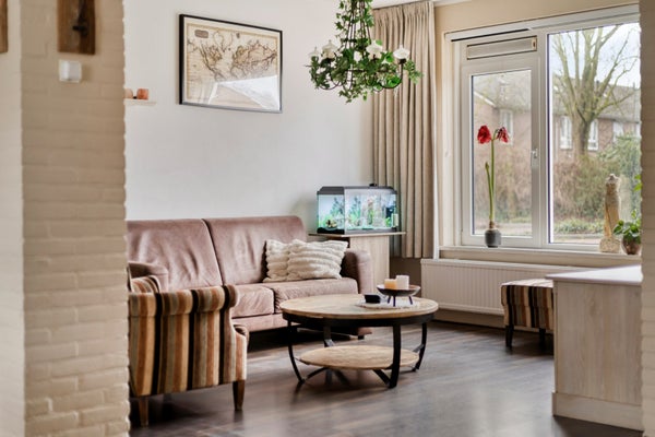 Er is voldoende ruimte voor een royale zithoek aan de straatzijde. Via de grote ramen heeft u van hieruit zicht op de brede woonstraat.