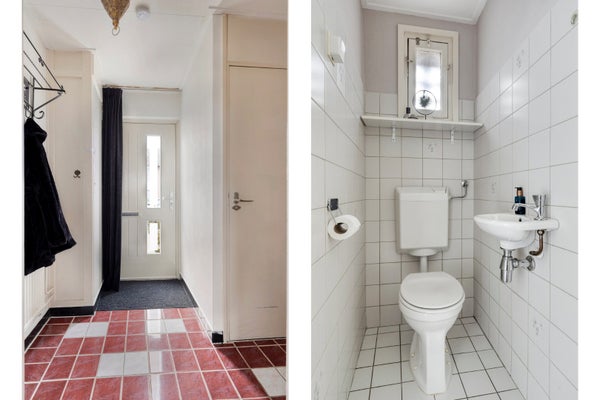 Vanuit de hal heeft u toegang tot het toilet en de woonkamer.