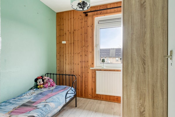 De twee grootste slaapkamers zijn van elkaar gescheiden door middel van een kastenwand en voorzien van een laminaatvloer. In de derde kamer ligt vloerzeil. De voor- en achtergevel zijn aan de binnenzijde afgewerkt met hout waarachter tempex aanwezig is. De overige wanden zijn geschilderd.