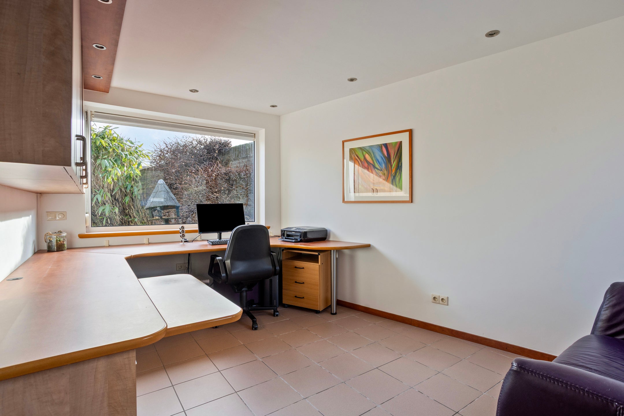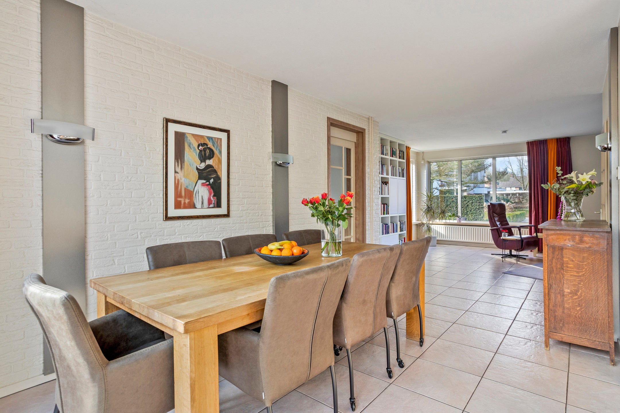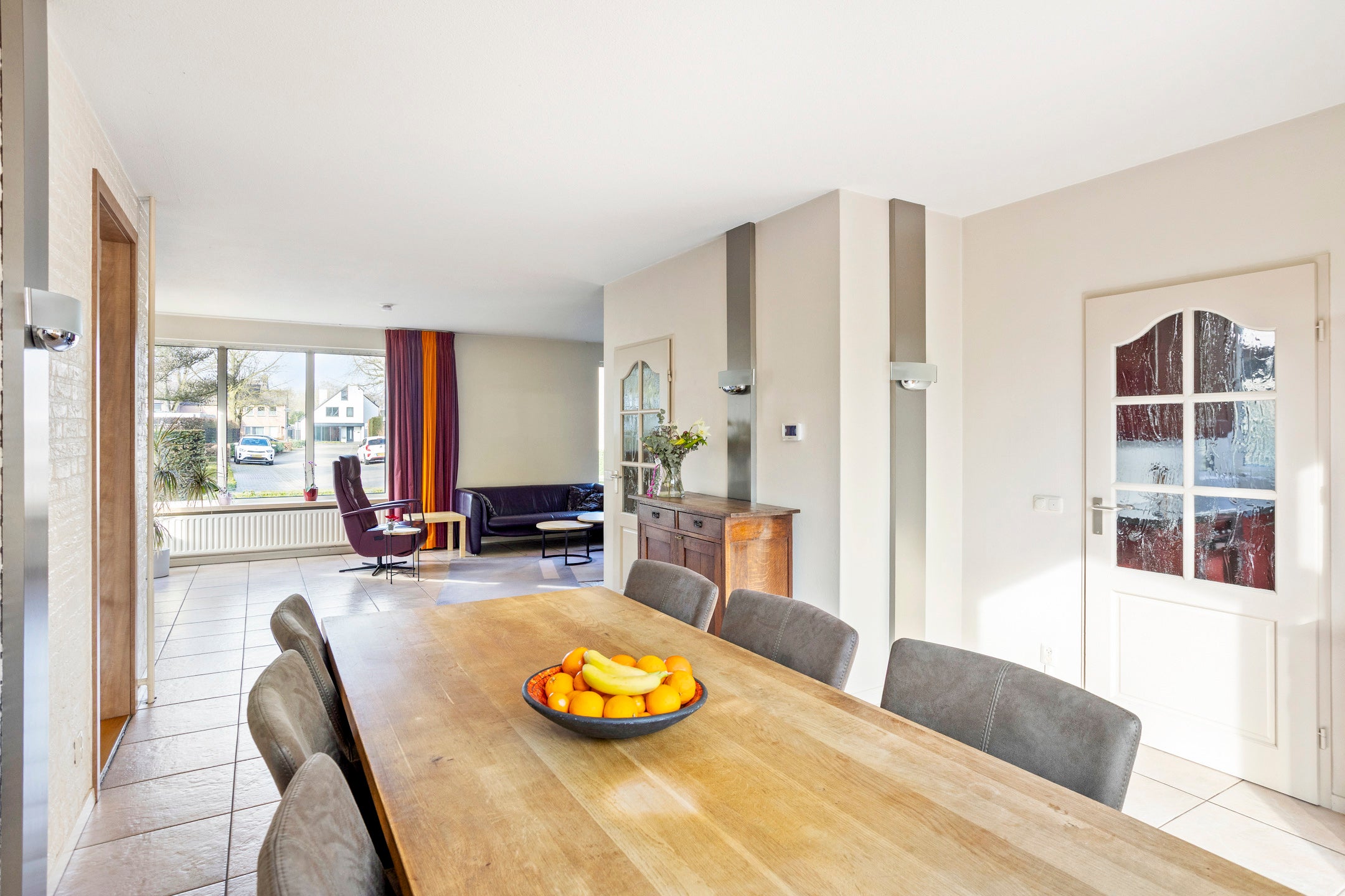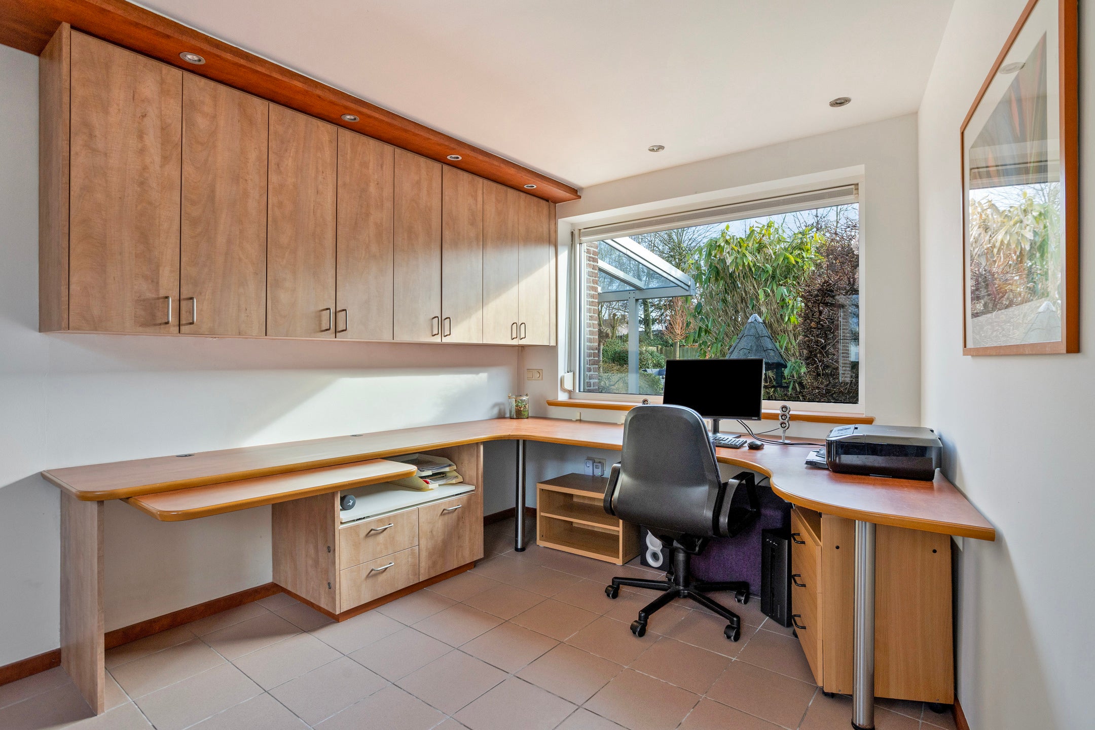 De begane grond beschikt over vloerverwarming en grote ramen voor een prachtig uitzicht op de tuin. De ruime woonkamer omvat een gezellige houtkachel, en de eetkamer heeft een brede schuifpui naar de zonnige tuin. De complete hoekkeuken grenst aan een praktische bijkeuken.