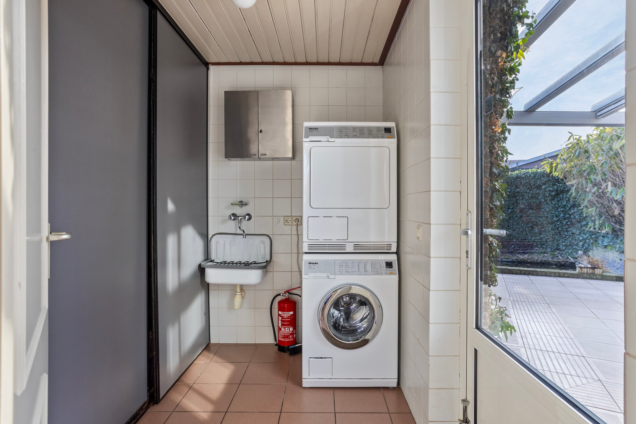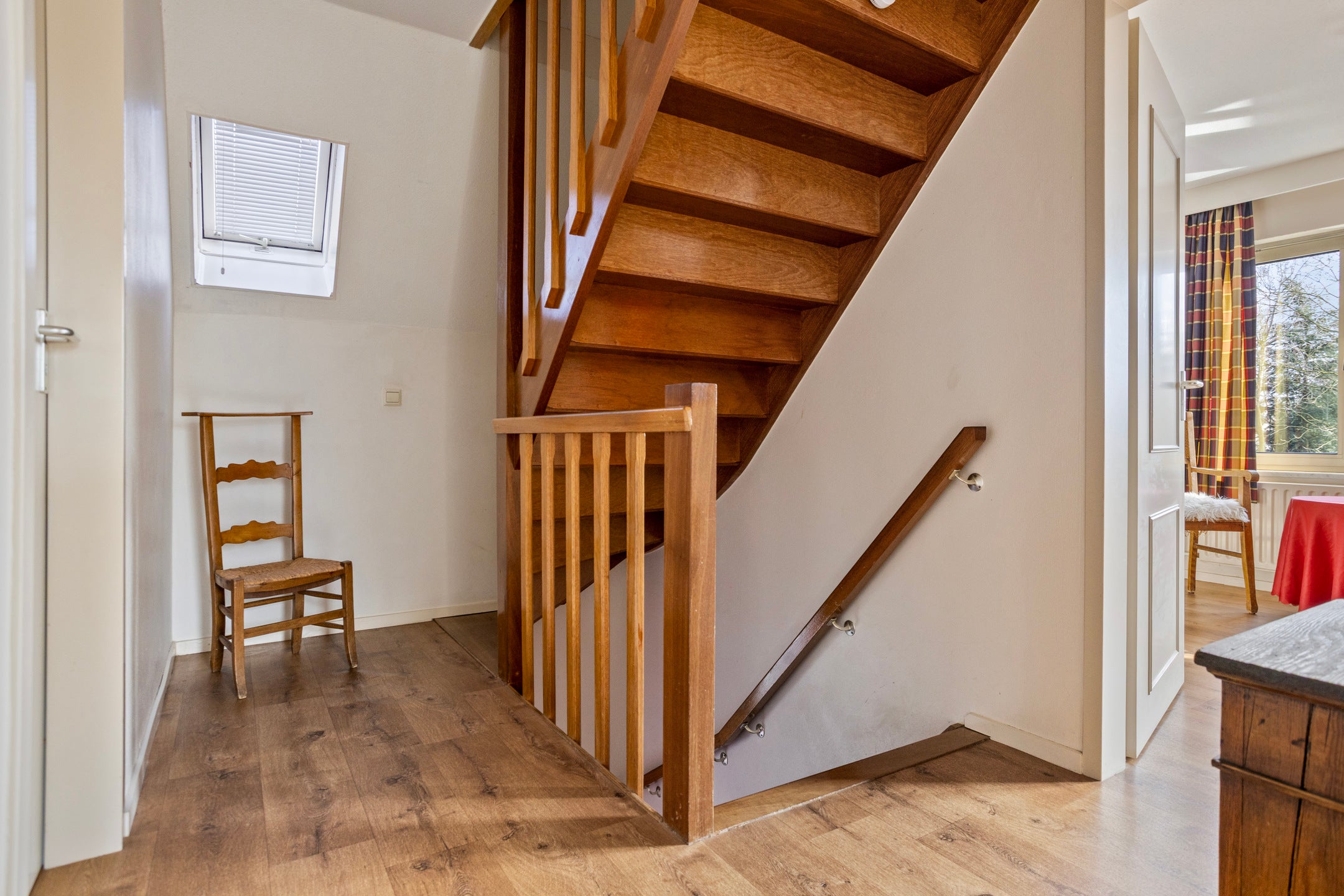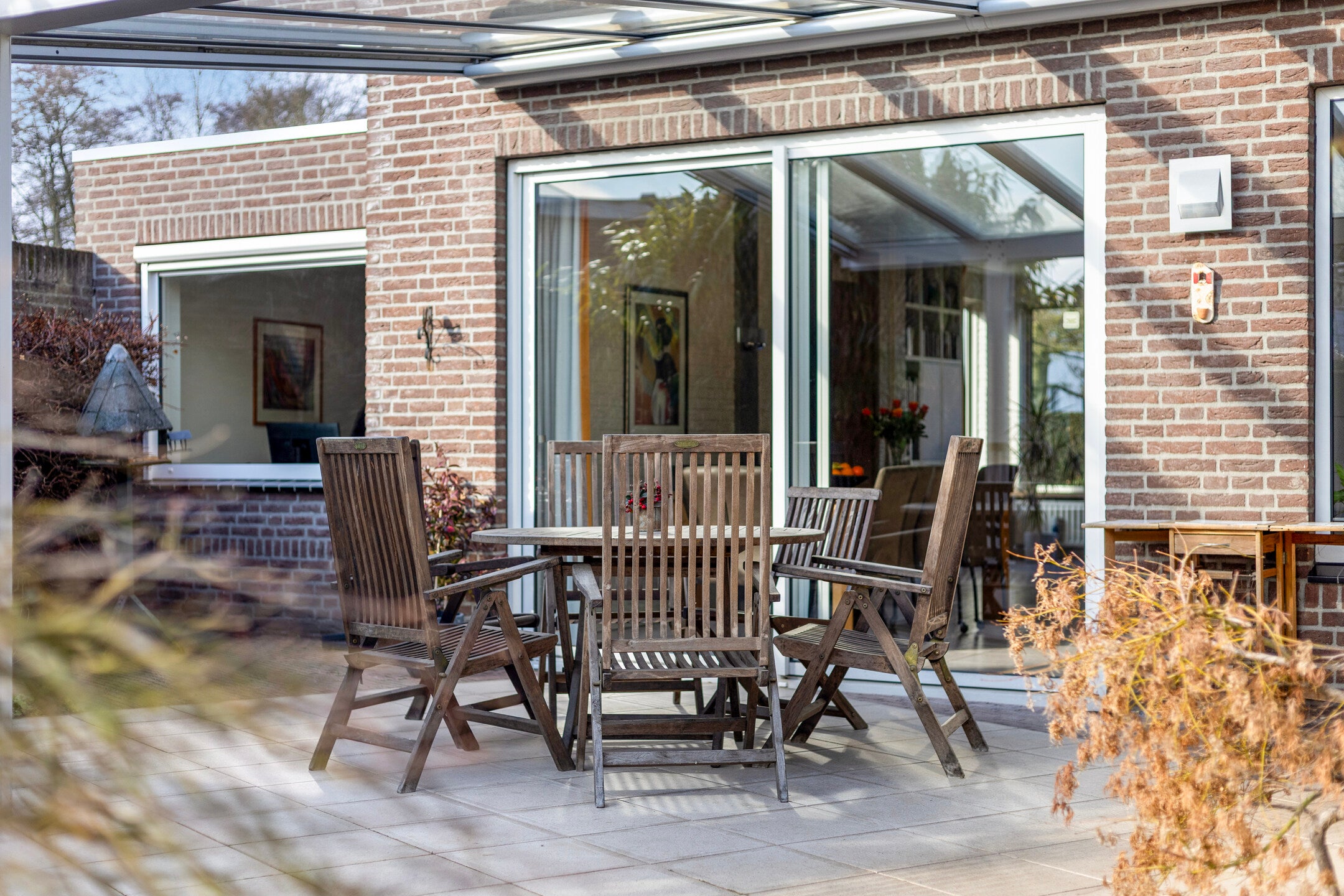 Op de eerste verdieping zijn er drie ruime slaapkamers en een complete badkamer. De tweede verdieping biedt extra ruimte met een voorzolder en twee slaapkamers. Buiten geniet u van een prachtig terras met glazen overkapping en veel privacy. De woning heeft ook een garage van 25 m² en is goed onderhouden.