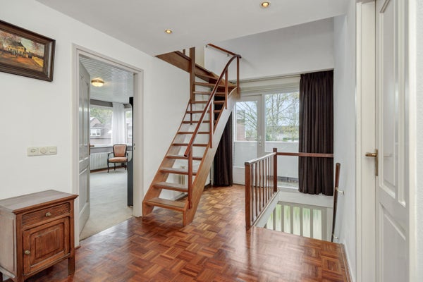 Deze vrijstaande woning biedt veel leefruimte op drie verdiepingen en is geheel onderkelderd. Er is een ruime oprit voor meerdere auto’s en een inpandige garage van 25 m². De woning is rustig gelegen nabij het Klokkengieterspad en op korte afstand van het centrum. De woonkamer heeft een zithoek aan de voorzijde met veel daglicht, een open haard en een schuifpui naar de tuin. De eetkamer is toegankelijk vanuit de woonkamer en de keuken. Op de eerste verdieping zijn drie ruime slaapkamers en twee badkamers. De tweede verdieping biedt een voorzolder en een vierde slaapkamer. De kelder bevat een portaal, grote (wijn)kelder en multifunctionele ruimte. De tuin ligt op het zuidoosten met een overkapping en toegang via een poort aan de zijkant. Het huis heeft een energielabel C en recente verbeteringen aan de kozijnen.