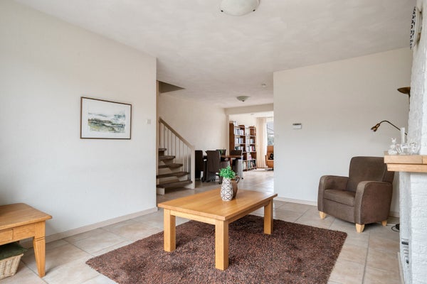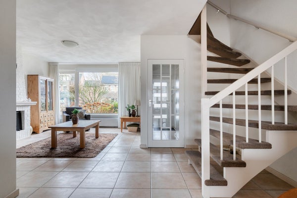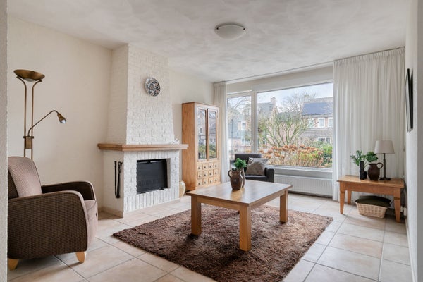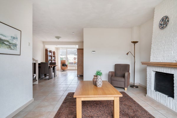 De woonkamer heeft een zithoek aan de voorzijde. Hier bevindt zich een gezellige openhaard. Via het grote raam in de voorgevel kijkt u uit op de voortuin en de brede woonstraat. Voor dit raam is een screen aanwezig.