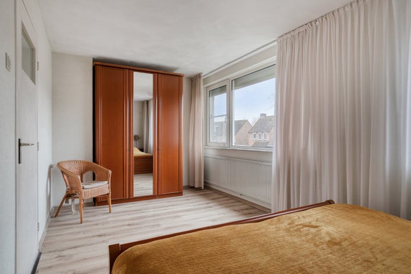 De slaapkamers zijn respectievelijk 5,77 x 2,78, 2,80 x 3,20 en 2,84 x 3,20 meter groot. Op de vloer ligt laminaat de wanden zijn voorzien van spachtelputz. De kamers hebben grote ramen in kunststofkozijnen waarvoor rolluiken geplaatst zijn. De grootste slaapkamer ligt aan de straatzijde de overige twee kamers liggen aan de tuinzijde.