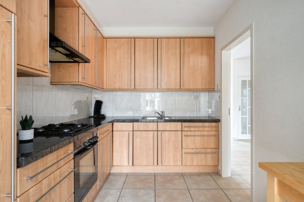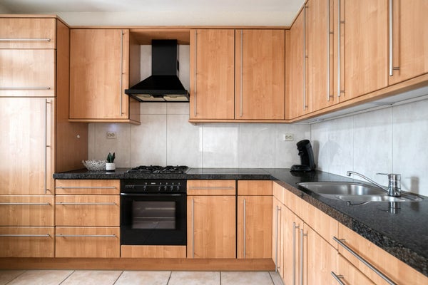 - Keuken in hoekopstelling met inbouw apparatuur.