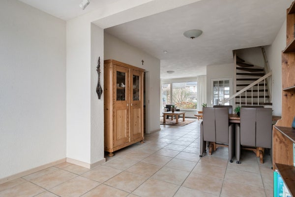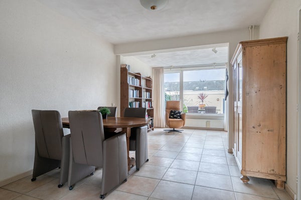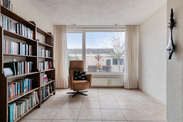 Een eethoek laat zich eenvoudig plaatsen in de ruimte die zich naast de keuken bevindt. Vervolgens is er nog voldoende ruimte voor een leeshoek of een speelhoek nabij het grote raam aan de tuinzijde.