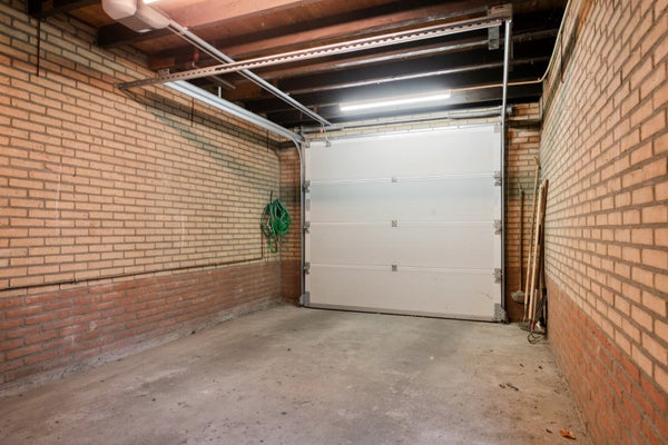 De berging en de garage worden van elkaar gescheiden via een muur met tussendeur. De garage heeft een automatische rolpoort aan de achterzijde, de berging heeft een loopdeur aan de tuinzijde.