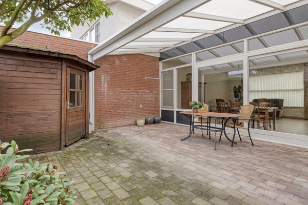 De patiotuin is circa 6,65 breed en 6,50 meter diep en grotendeels verhard met sierklinkers. Grenzend aan de woning is een royaal overdekt terras aanwezig. Hier kan eenvoudig een grote eettafel of royale lounge set staan.