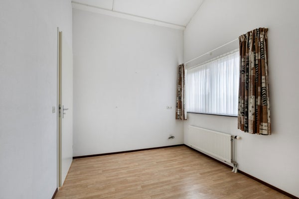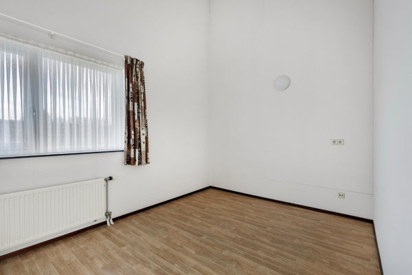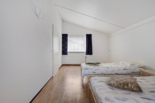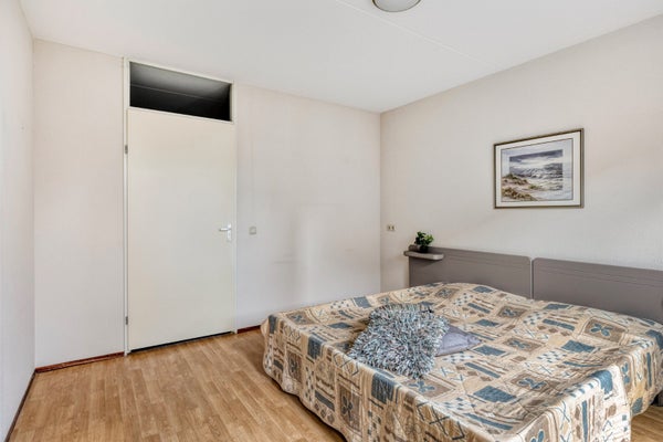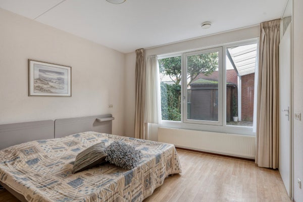 De slaapkamer die zich op de begane grond bevindt, ligt aan de tuinzijde van de woning en heeft een afmeting van circa 4,05 x 3,60 meter. Er is voldoende ruimte voor een tweepersoonsbed en een linnenkast.