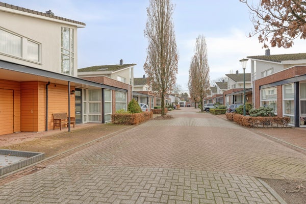 • Deze woning heeft een erg mooie uitstraling en ligt in een rustige woonstraat met haagjes en hoge bomen. De woonstraat is doodlopend voor autoverkeer.