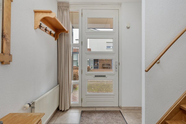 Direct bij binnenkomst is het effect van de mooie architectuur al zichtbaar: de voordeur van de woning geeft toegang tot een hal met een hoge vide en lange ramen. De lichtinval is erg mooi. De wanden zijn voorzien van spachtelputz en er ligt een tegelvloer. In de hal bevindt zich de trapopgang naar de eerste verdieping en vanuit deze hal heeft u toegang tot het toilet en de woonkamer.