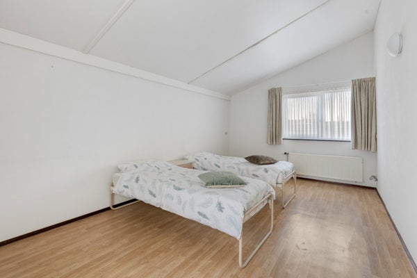 De slaapkamers op deze verdieping zijn respectievelijk circa 3,25 x 5,80 en 3,80 x 2,75 meter groot. Er ligt vloerzeil, de wanden zijn gesausd. Beide kamers hebben grote ramen.