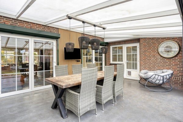 Deze vrijstaande woning van 258 m² biedt veel leefruimte en mogelijkheden, zoals een praktijk aan huis of extra ruimte voor langer thuiswonende kinderen. Gebouwd in 1995, is de woning goed geïsoleerd en heeft energielabel A met 36 zonnepanelen. De hal leidt naar de ruime woonkamer en woonkeuken, beide met openslaande deuren naar de tuinkamer. Daarnaast is er een multifunctionele ruimte, geschikt voor diverse doeleinden zoals een hobbyruimte of kantoor. De eerste verdieping heeft vier slaapkamers en een ruime badkamer. De diepe tuin beschikt over een ruime tuinkamer met glazen schuifwanden, schuren en verschillende overkappingen. De woning is gelegen aan een rustige straat dichtbij de Polderse Bossen.