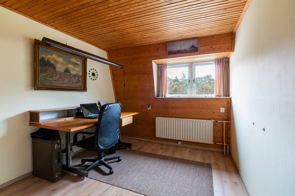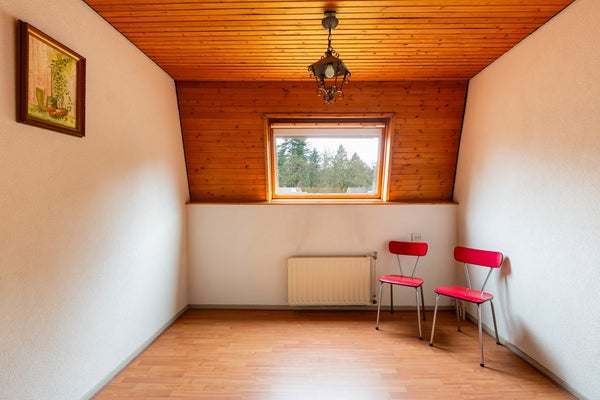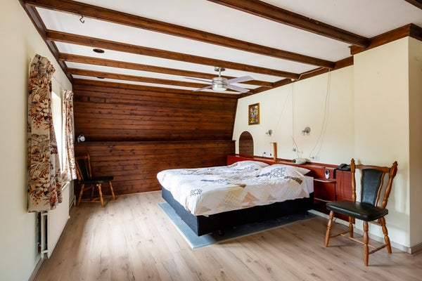 Op de eerste verdieping biedt de overloop toegang tot drie slaapkamers en een badkamer. De royale master bedroom heeft een oppervlakte van maar liefst 29 m². Via een vaste trap bereikt u de tweede verdieping met een ruime zolder.