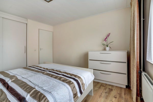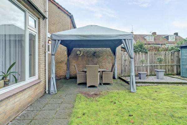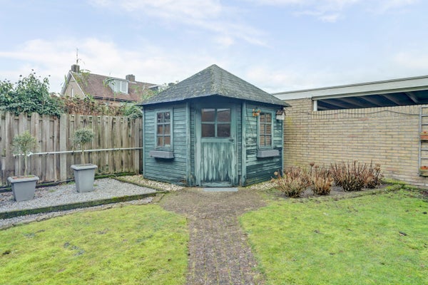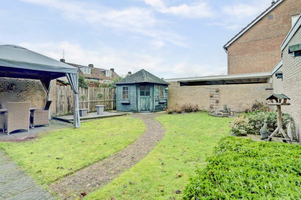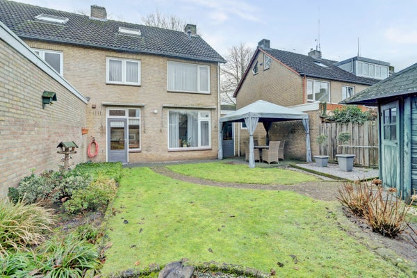 In de rustige, kindvriendelijke wijk zijn basisscholen, speeltuinen en het centrum met winkels en horeca heel dichtbij. Voor natuurliefhebbers zijn er prachtige wandelroutes en bossen op loopafstand. De woning heeft een lichte tegelvloer, en de keuken biedt alle benodigde voorzieningen. De eerste verdieping bevat drie slaapkamers en een nette badkamer. De tweede verdieping biedt extra ruimte en een vierde slaapkamer. Buiten is er een verzorgde tuin met een houten tuinhuis en een garage met elektra.