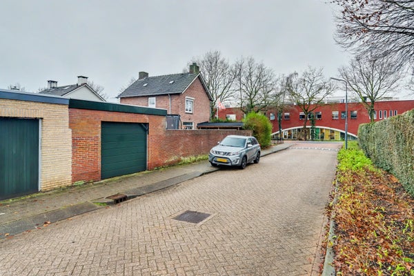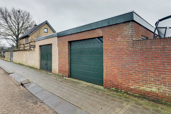 Achter op het perceel staat de vrijstaande stenen garage van circa 25 m². De garage beschikt over een betonnen vloer, spouwmuren, elektrische sectionaal poort en elektra.