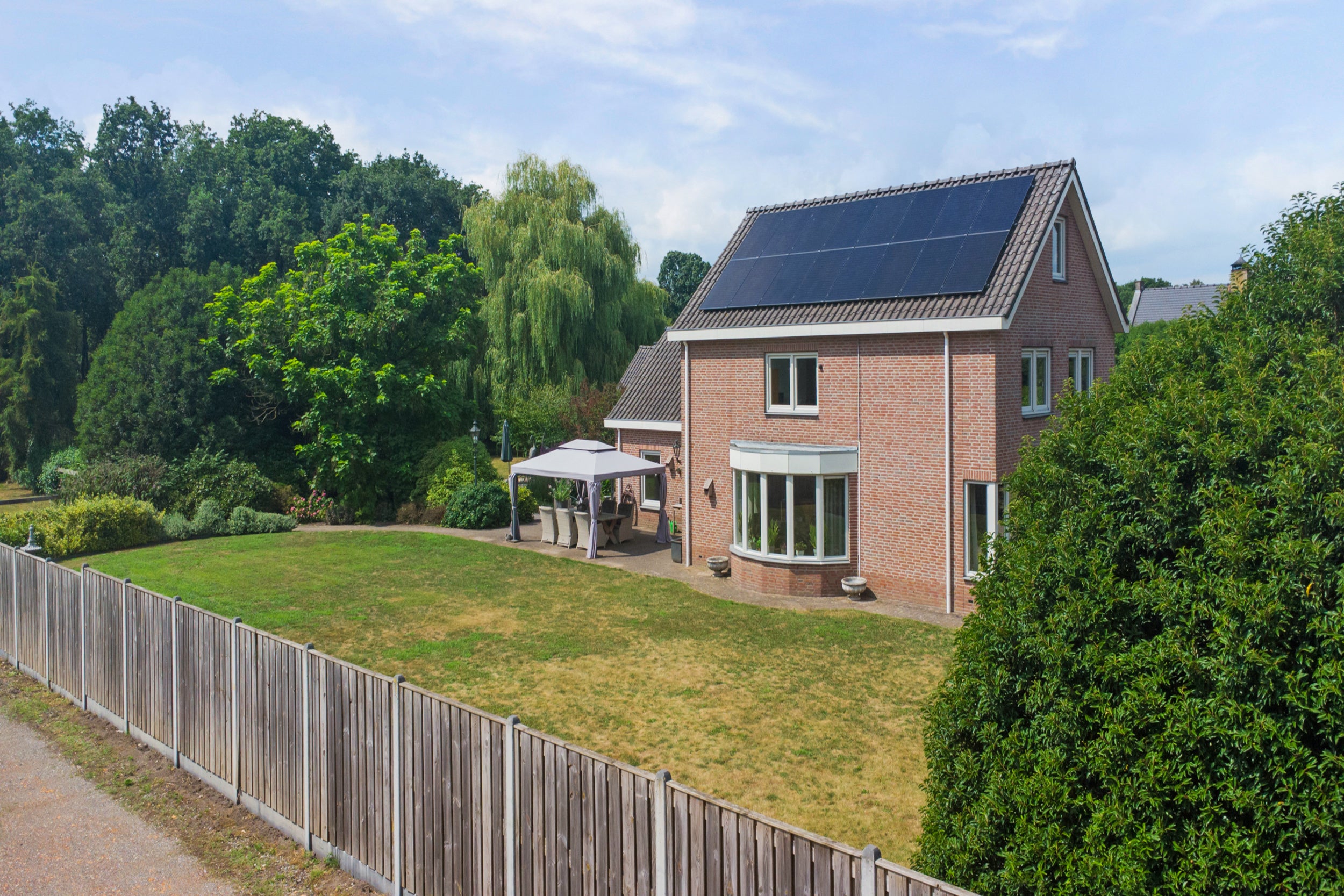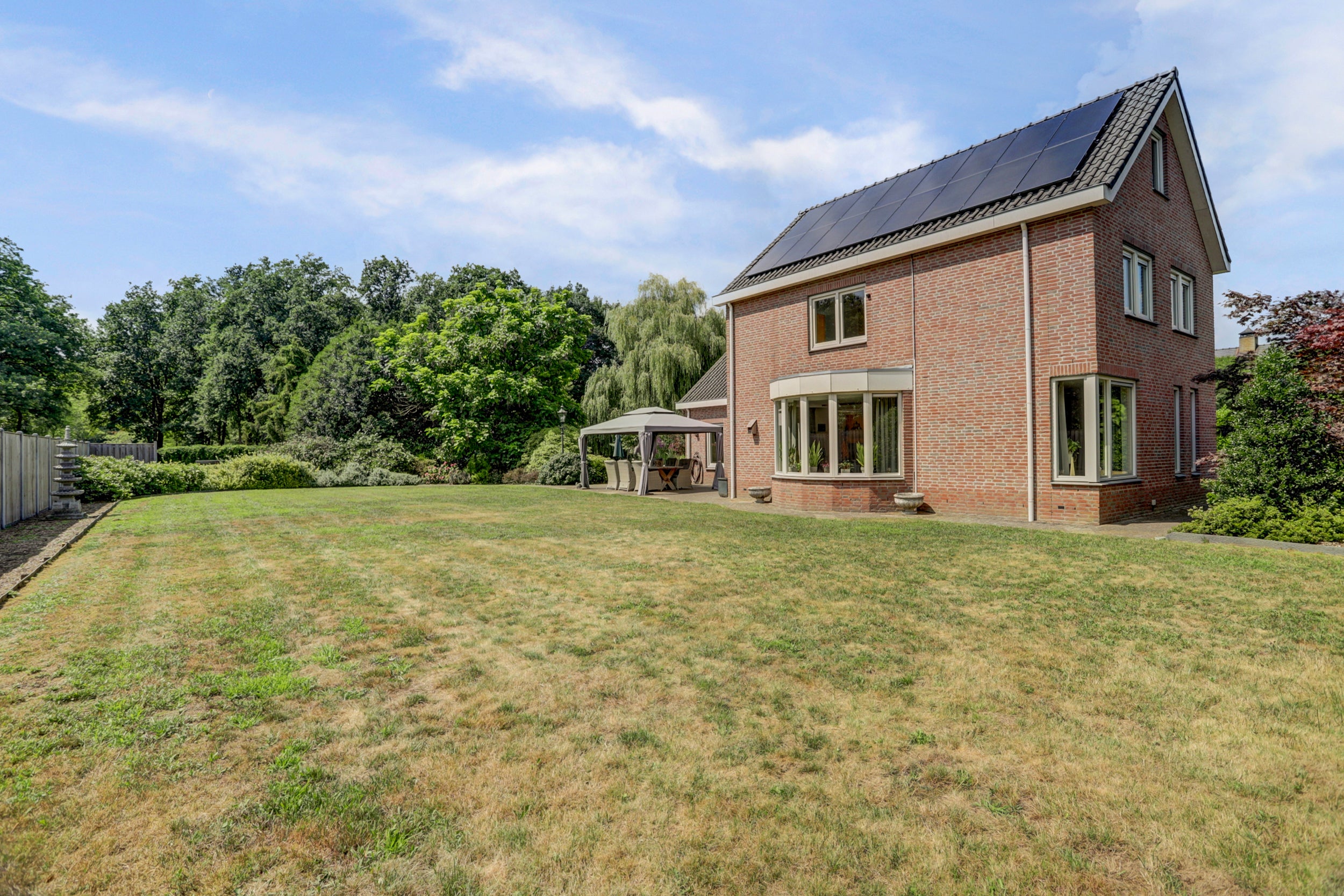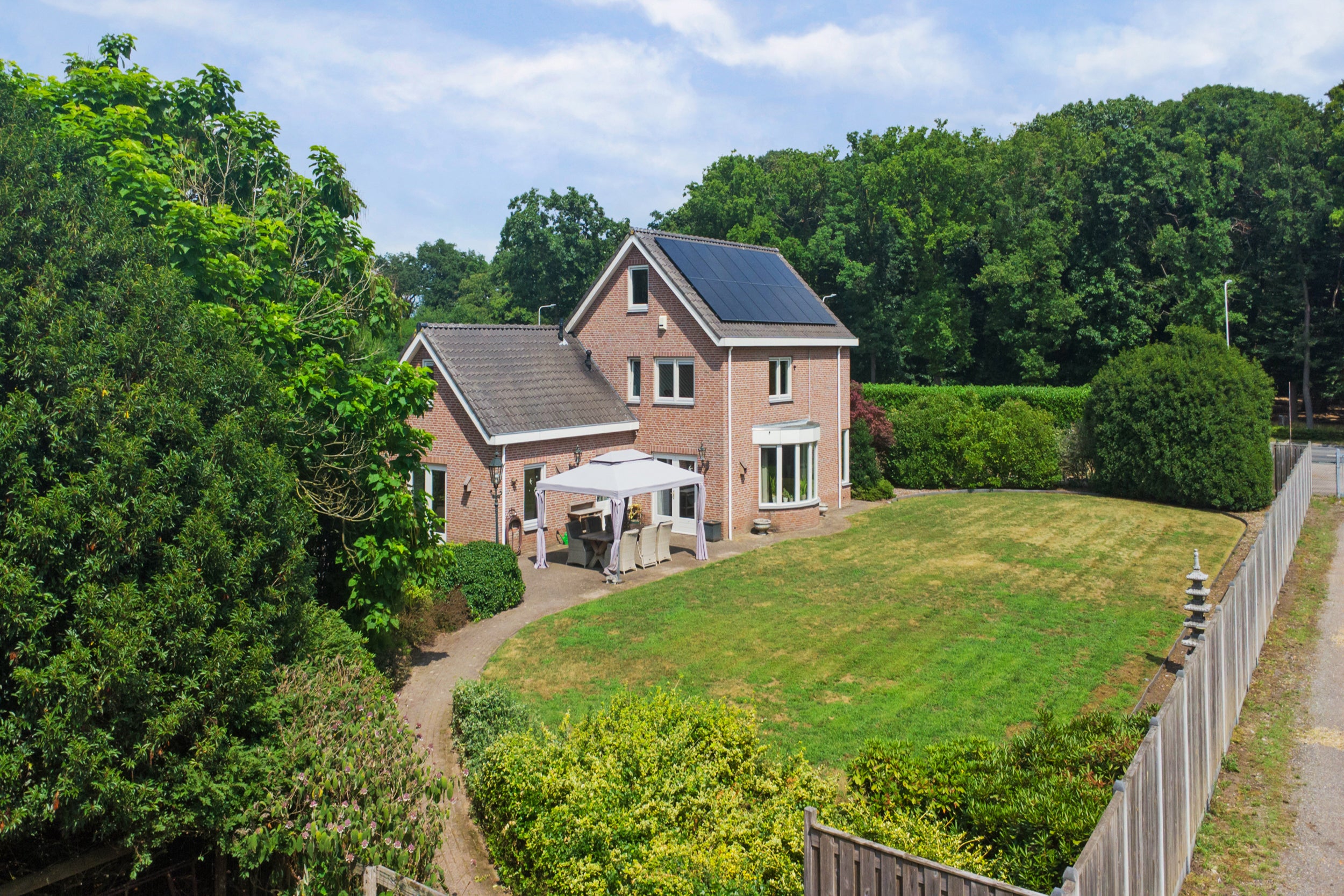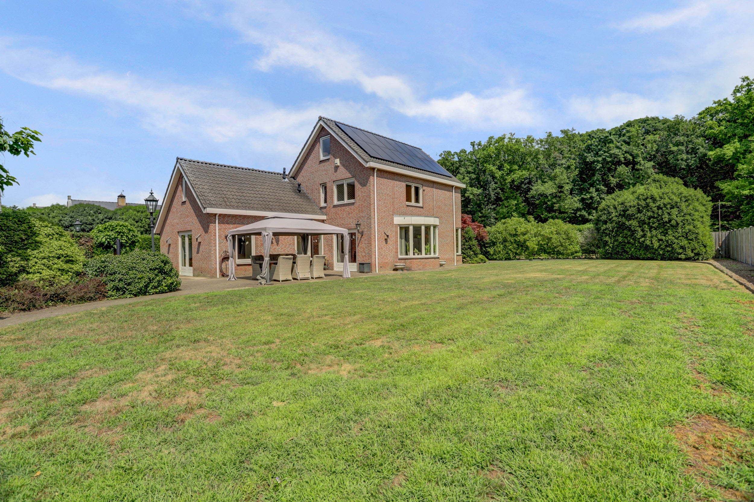 Deze vrijstaande woning in Baarle-Nassau ligt op een royaal perceel van 3.465 m² en beschikt over vier slaapkamers en een ruime, met zorg aangelegde tuin. Met een open keuken en een royale woonkamer, biedt het voldoende ruimte om te ontspannen. De woning, gebouwd in 1997, is goed onderhouden en energielabel A, mede dankzij de 16 zonnepanelen. De garage is aanpandig en er is een vrijstaande garage met zolder aanwezig. De badkamer is volledig betegeld en biedt ligbad, douche en toilet. In de rustige tuin met volwassen bomen en een vijver kunt u volop genieten van privacy. Baarle-Nassau biedt goede voorzieningen en bereikbaarheid van steden zoals Breda en Tilburg. De ideale plek om te wonen met rust en ruimte.